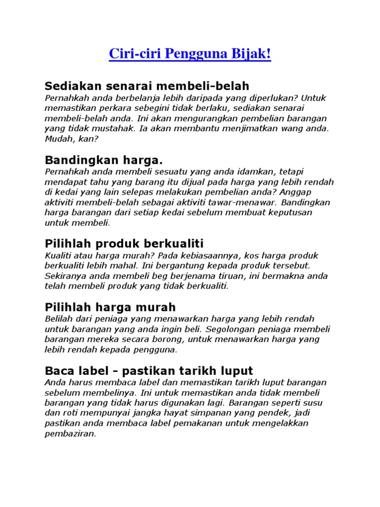 Ciri-ciri Pengguna Yang Bijak - Macinjk