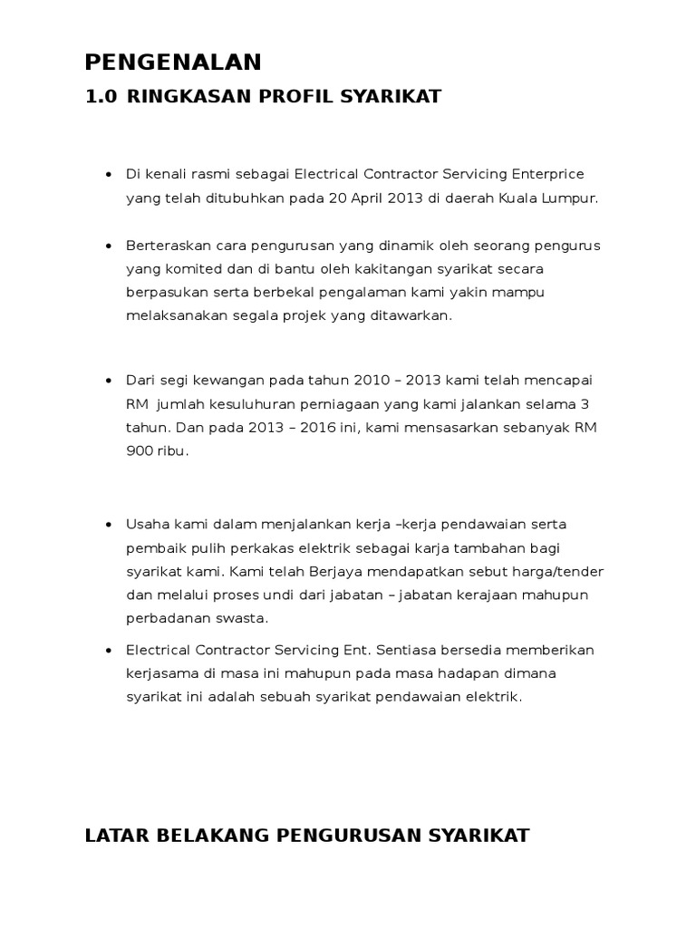 Contoh Pengenalan Dan Profile Perniagaan PDF